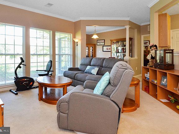 First floor unit in Hearthstone at Village Crest, part of Taylor Village! This 2 bedroom, 2 bathroom unit faces towards the trees for a serene view from all windows and the patio!! The dining room has chair railing and crown molding, crown leads into living room. Kitchen has 42 inch cabinets pantry and the stainless steel appliances are 1 year old. Washer and dryer are in the kitchen hidden by doors. Just off the kitchen is a perfect in home office area with a door that leads to the patio. All paint is very neutral. This over 55 community has so much to offer: Indoor pool with hot tub, sauna, meeting rooms, party rooms, gym and an outdoor pool. Close to shopping, dining, Old Ellicott City, commuter routes and so much more!