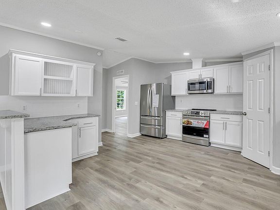 Welcome to 8135 Gabe Road! This newly renovated home boasts 4 bedrooms, 2 bathrooms, and sits on just over 1.5 acres, providing a delightful blend of country charm and modern flair. As you step inside, you'll immediately notice the impressive recent upgrades, such as luxury vinyl flooring throughout, brand new kitchen appliances, granite countertops, and stylish subway tile backsplash. The primary suite offers ample closet space, complemented by a freshly designed bathroom featuring a new double sink vanity, tasteful light fixtures, and an upgraded shower. The secondary bedrooms are generously proportioned and accompanied by another full bathroom. A massive bonus room complete with a bar area awaits, creating the perfect space for gatherings. Alternatively, you can unwind on one of thetwo porches, either at the front or rear of the home, to enjoy the serene surroundings. Exterior upgrades include a new roof and HVAC system. The property is fully fenced in with a convenient gate at the entrance. Don't miss out on this fantastic opportunity!