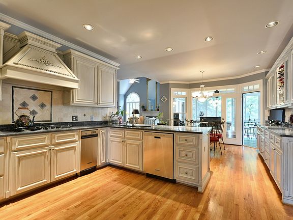 Beautifully appointed home in St Marlo Country Club, Lambert HS. Stunning front entry doors. Elegant, freshly painted interior & refinished HW floors. Traditional floorplan w guest suite on main level-comfort/privacy. Remodeled kitchen w spacious cabinets & plenty of space for entertaining. Glassed in sun porch! Outdoor living/indoor comfort. Lg master has private sitting room w fireplace, morning bar. His & hers closets a must see! Terrace level-full kitchen, media rm, office, workout rm, workshop BR/rec room full bath. Stone wall creates private oasis for heated, saline pool/spa.