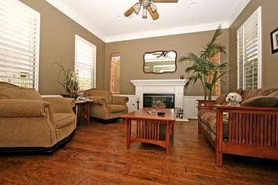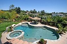 Just REDUCED cul-de-sac estate in Saddle Ridge was built in 2003. It has 5 large 'suite' bedrooms with designer touches, 4.5 bathrooms, 4415 square feet of spacious luxury living! Large south-facing lot. Private resort style rear yard with gorgeous Pebble Tech pool, ledgerstone wall, water fountains,multi-colored lights,fire ring, BBQ, cov.patio & palapa....The Works!. Garden area has fruit trees. Interior includes distressed hardwood and travertine flooring. Upgraded kitchen has center island and granite