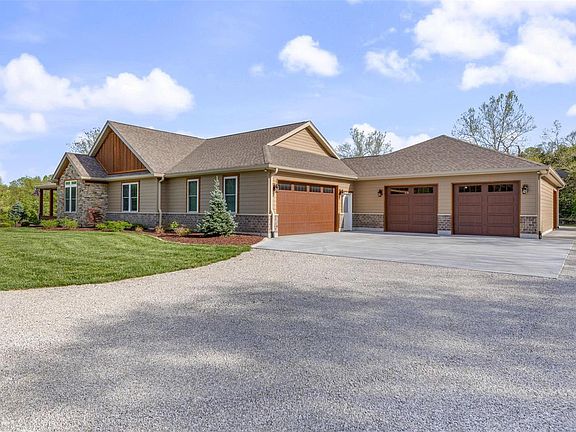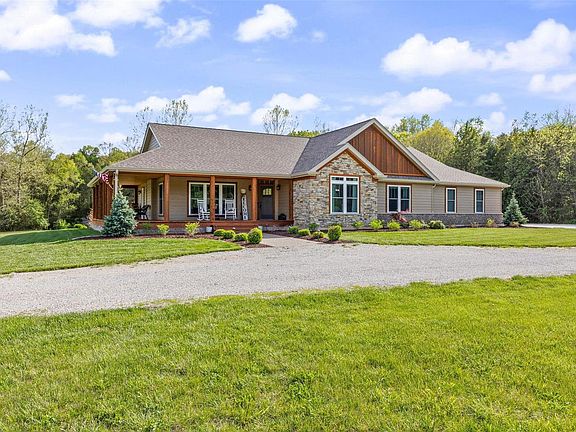 This impeccable 5yr young custom built ranch home offers an open floor plan filled with an abundance of natural light as each room showcases breathtaking views of the 3+ acre lot. The kitchen is a show stopper! Designed with an oversized pantry, a substantial island, custom cabinetry with abundant storage all topped with beautiful granite countertops! Experience the ultimate indoor/outdoor living space as you enjoy the lanai just off the kitchen. Retreat to the primary suite with its luxurious private bath and large walk-in closet. Two additional bedrooms are also of generous size. The expansive w/o lower level awaits your personal touch. Upgrades include all electric, geothermal HVAC, 6" walls, LP SmartSide siding, 400 + 100amp electric service, the list just keeps going. So many elegant touches and unique features truly make this home something special!  From the beckoning front porch, the seamlessly flowing floor plan to the oversized 7 car garage ... this home is a must have! Additional Rooms: Sun Room