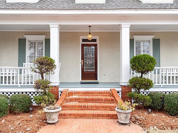 Charleston charisma and the allure of Old South architecture have been captured in this immaculate home, complete with a classic white picket fence reminiscent of a time gone by. Open the front door to dazzling new hardwood and tile floors which cover the first floor and add an air of monochromatic completeness. The walls in this residence are freshly painted in tasteful and current colors. The footpath through the foyer passes a stately dining room on the right and leads to a warm, inviting great room. There you'll find a gas fireplace with an attractive wood mantle and tile surround which make this room the perfect place to relax or entertain. French doors open from the great room to a covered back porch where you catch site of the golf course without being too close to the action. Back in the great room are custom built-in cabinets and shelves for books, TV, and memorabilia. The kitchen floors are paved with rich new tile which blends with an array of soothing colors and works with a variety of color palettes. Granite countertops make the perfect serving surface; and there is plenty of storage space, a dining area, and sparkling stainless steel appliances in this well designed and appointed kitchen. You can watch your puppy frolic in the fenced backyard area while relaxing on the covered wooden porch or look east toward the lush area of fairway #1. An attractive and convenient half-bath is located right off of the kitchen too! At the opposite end of the home is an expansive master bedroom suite, boasting a luxurious, freshly renovated master bath with a jetted tub, granite topped separate vanities, and a king-sized shower. Upstairs, are 4 more secluded rooms, including a recently renovated bath that has a handsome granite countertop and double vanities, two bedrooms, and a useful bonus room which can serve as a 4th bedroom, music room, office, etc... Don't miss this jewel in one of Montgomery's most desirable areas!