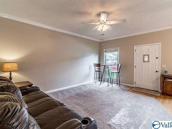 One bedroom/one bath full brick condo on one level with fresh paint and new carpet in quiet neighborhood. Open great room/kitchen combo that is bright and airy. Small back patio with privacy fence. Front door parking, with refrigerator, washer and dryer included. Located just west of Whitesburg Drive(35802), and minutes to Martin Road, the Parkway and I-565.