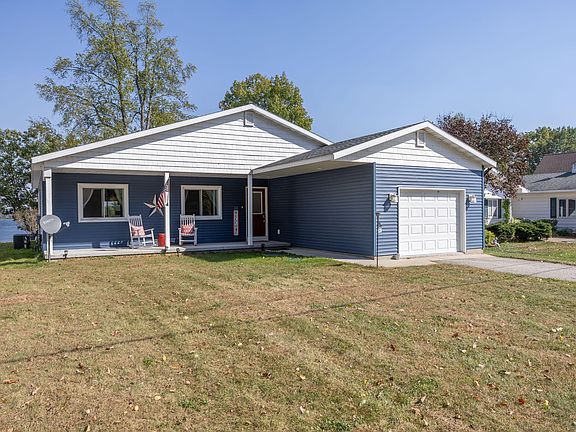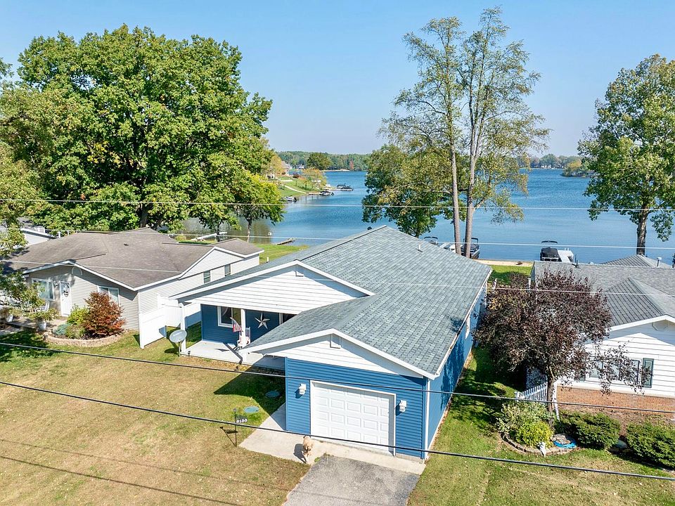 Welcome to your dream waterfront retreat on Canadian Lakes! This stunning ranch-style home offers 60 feet of prime sandy beach frontage and breathtaking water views, making it the perfect escape for relaxation or year-round living. With 4 spacious bedrooms—one of which is non-conforming—and 2 full baths, this home has been thoughtfully designed to provide comfort and style. Step inside to discover new luxury vinyl plank flooring throughout, complemented by numerous upgrades, including a tile backsplash, an extra-large center island, stainless steel appliances, and a dedicated wine/drink or coffee bar for entertaining. The heart of the home features a beautiful stacked stone gas log fireplace, perfect for cozy winter evenings while watching ice fishermen on the lake. The four-season room offers a panoramic view of the water with a large wall of windows, leading out to a maintenance-free Trex deck where you can soak in the sun or stroll down to the sandy beach. Rinse off after a day in the water with the convenient outdoor shower, and enjoy the elegant touch of stamped concrete throughout the outdoor space.Located just an hour from Grand Rapids, it's the ideal escape from the city without sacrificing convenience. Don't miss out on this rare opportunity to own a piece of prime waterfront propertyit won't be on the market for long!
