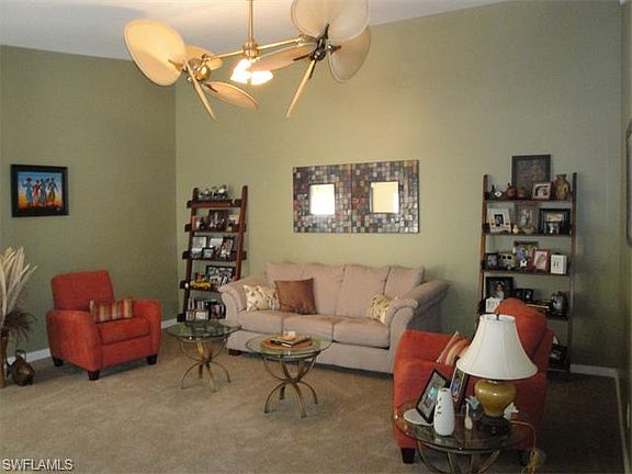 Meticulous upgraded Capri Villa with optional extended living area. Poured concrete construction, premium larger lot, alarm system, screened lanai, privacy walls offer complete privacy, custom ceiling fans, porcelain tile in traffic areas. VeronaWalk features: 24/7 guarded gated entrance, resort-sized community pool, lap pool, lighted tennis, basketball, bocce ball, pickel ball courts, children's play area with equipment, 24/7 fitness center, over 20 miles jogging and hiking trails. The Town Center offers: Bank, post office, library, restaurant, travel agency, wellness center, gas station, car wash, computer center, ballroom, card rooms, and a full-time activities director. VeronaWalk was awarded "Community of the Year" for the State of Florida in 2014.