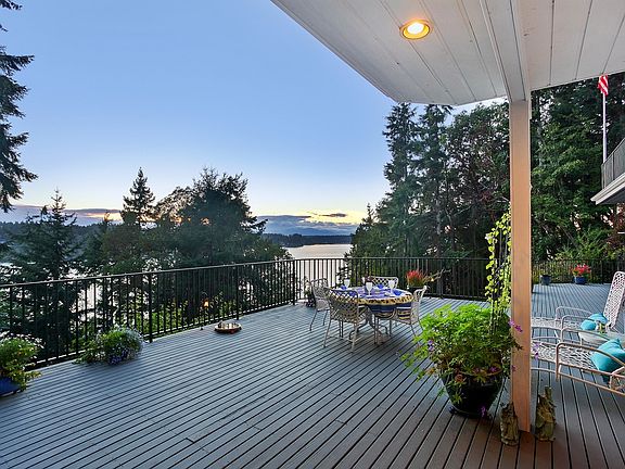 Privacy is the hallmark of this west facing waterfront home w/main floor master, pvt beach & sunset views over the Olympics. Easily accessible pvt 151 ft beach w/oysters, clams & salmon. Enjoy watersports & vacation in your own estate. Expansive decks include a hot tub & plenty of room for outdoor entertaining while indoors you will find 2 additional bdrms+ 2nd master suite providing a slice of heaven for guests. Don't miss the separate 530 sq. ft. office, guest or media room over 2 car garage