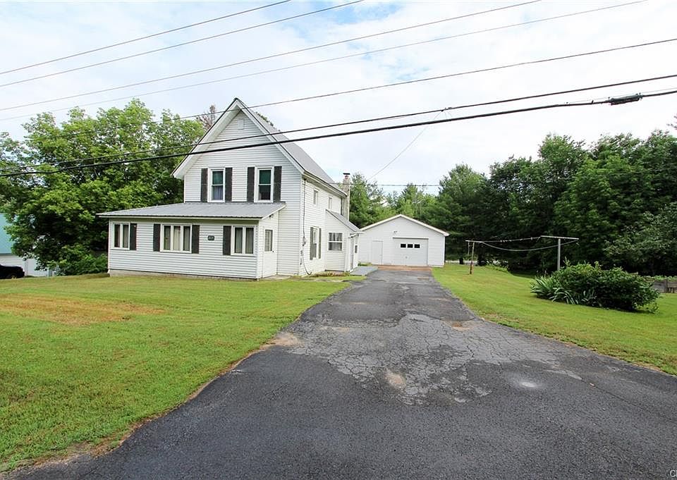 4 bedroom, 1 bath home with oversized detached garage on 2.91 acres of land. Eat-in kitchen was renovated in 2000, offers plenty of cupboard and countertop space. 1st floor bedroom or office space. Enclosed wrap around porch with heat offers more living space year-round. Wide staircase leading upstairs to 3 additional bedrooms and built-in closets in the hallway. 24x40 detached garage with workbenches and overhead garage door. 2.91 acre lot that is mostly wooded with apple trees. Sold as is, where is. Furniture in home stays with property. Great location, country living yet minutes from Lake Bonaparte and Harrisville.