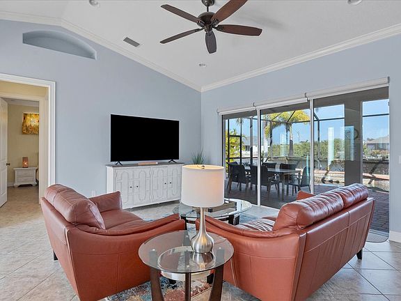 Welcome to this charming single-story South Gulf Cove home, featuring three bedrooms and two bathrooms. This spacious property is perfect for entertaining and family gatherings, offering a private pool and spa with canal access to Charlotte Harbor. Enjoy the fully equipped kitchen and dining area that seats six, along with parking for four cars in the driveway. The home boasts a fully equipped kitchen, ideal for preparing meals and entertaining guests. Relax in the living room with a smart TV or enjoy the outdoor BBQ area. The property includes beach supplies such as chairs, making it easy to enjoy nearby beaches. Pool and spa heating is available at an additional cost of $200 per week or $500 per month, plus tax. The garage accommodates two cars, and there is complimentary guest use of the BBQ, though guests are responsible for propane refills and cleaning the BBQ upon departure to avoid a $56 fee. Located in the South Gulf Cove community, this home offers access to bike lanes, walking trails, parks, and a playground. It's conveniently situated near shopping and attractions, including Chadwick Park at Englewood Beach, Boca Grande, and the Englewood Farmers Market. The Publix Supermarket at Gulf Cove is just 3 miles away, and Punta Gorda Airport is 24 miles from the property. This smoke-free and pet-free home ensures a comfortable stay. Check-in is streamlined with online email access, and 24/7 on-call maintenance is available. Towels and linens are provided, along with complimentary Wi-Fi. Starter supplies are included, but guests are responsible for replenishing items as needed. The pool is serviced weekly, and the spa will not heat without pool heat being paid for. A $56 fee applies if the BBQ is not cleaned upon departure.