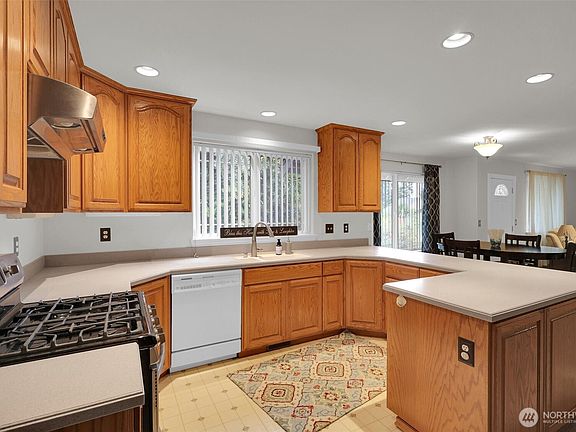 Nearly 3,800 sq. ft. of custom living with endless options! Formerly used as a duplex, this home offers 2 living spaces. Main level features formal LR & DR, large open kitchen w/Corian counters, ample cabinets, breakfast bar, half bath & oversized den/office/pantry/bedroom. Upstairs primary suite boasts jetted tub & walk-in closet, plus spacious bedrooms & full bath w/skylight. Bonus room, 2nd full kitchen w/separate entrance above garage—perfect for multi-gen living or rental income. Enjoy private deck & AC. Oversized garage + workshop w/half bath. Private greenbelt setting, minutes to freeway & JBLM. Upgraded finishes, flexible design & income potential—this home has it all!