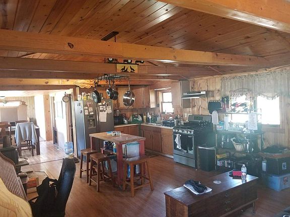 Spacious 2 Bedroom Cabin-Like Feel to this home. All single level living, Wood burning stove and LP fueled forced air furnace. All with 40 acres, private pond, a 2 car detached garage, plus, a 65 x 45 pole building with insulated Rec Room. Must see property!! Schedule today.