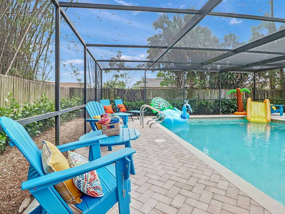 Just renovated! Brand new kitchen cabinets and appliances. Entire home freshly painted. Wonderful pool with screened lanai. GREAT location close to everything! New furniture, linens bedding, towels, pool toys an a lot more!