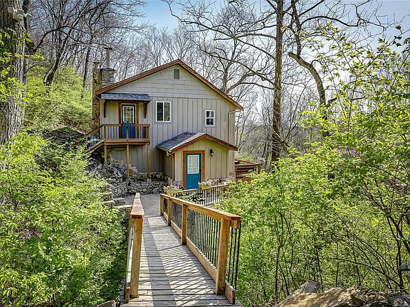 Back up offers are encouraged! Ever dream of living so close to nature that you could reach out and touch it? Then you're going to LOVE this home! Cozied up to a limestone bluff and nestled in the trees, youll enjoy the feeling of being cradled by a natural landscape. Delight in the prediction of rain because you know it will fill the cascading waterfall that flows beneath the wooden bridge. Cozy around the outdoor fireplace and relax to the symphony of nighttime wilderness sounds. The rustic feeling of this home is complimented by a renovated interior complete with modern conveniences. The sitting area features a one-of-a-kind exposed limestone wall that provides a perfect backdrop to the renovated kitchen with its granite countertops, stainless steel appliances, and other modern finishes. Other amenities include a large deck, balcony off the master bedroom, and detached garage with carport. This home has brand new HVAC system and includes 2 parcels.