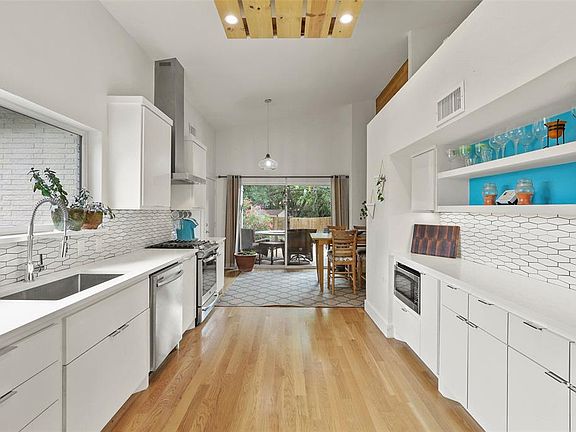 Mid-century style with modern amenities on a spectacular heavily treed creek lot! Designer touches throughout illuminate a white oak accent wall, private deck off kitchen, SS appliances & quartz counter tops. Natural Views create an Extraordinary residence with open spaces and generous windows for truly luxurious outdoor-indoor living, perfect for entertaining! Enjoy privacy with master and living area down, three large bedrooms and additional living space up! The large back deck overlooks the expansive backyard to beautiful Cottonwood Creek...simply one of the most beautiful lots in Richardson! Secluded enclave neighborhood offers privacy & convenience.