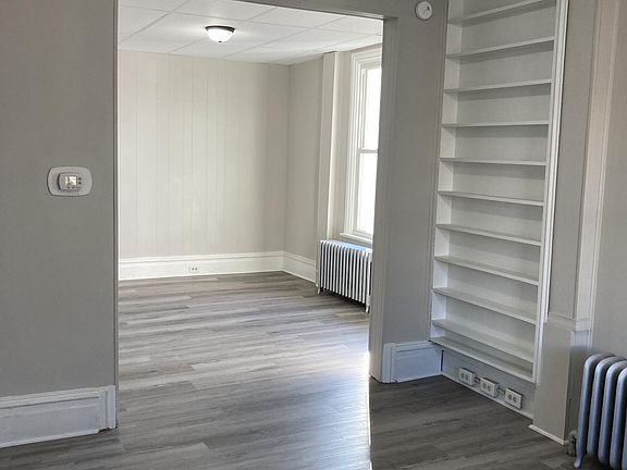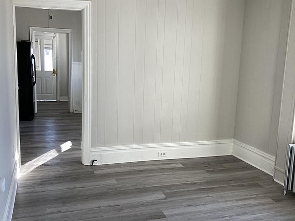 This home features new flooring throughout, a new gas range and refrigerator, a washer/dryer hookup, and gas boiler heating. The updated bathroom includes a tub/shower combo and a new vanity with storage. This house also boasts a spacious front porch, a small fenced yard, and a detached garage.