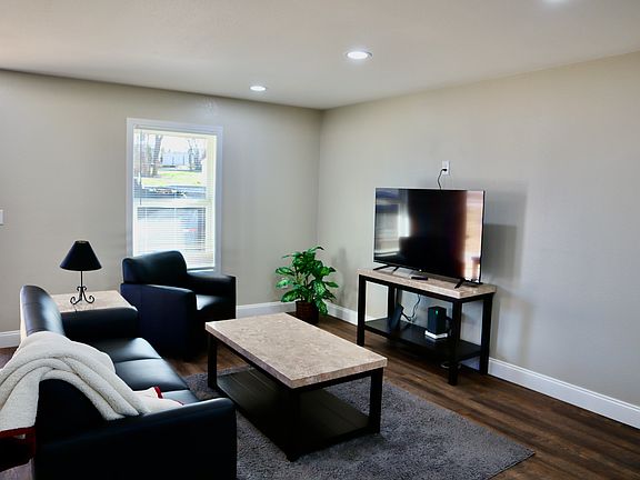 ATTENTION COLLEGE STUDENTS: Tired of small dorm living, or having to share a bathroom with your roommate? You & 3 of your friends will enjoy this spacious 4 bedroom / 4 bathroom, semi furnished, WiFi, and utilities included. This cottage rents by the room. Each individual renter will have a spacious private room which contains the following: Full size bed, large chest of drawers, bedside table with charging station, study desk with swivel chair, and a large walk-in closet. The private room also has its own ensuite: walk-in tile shower, vanity/sink, and toilet. The shared space includes: living room that has a leather sofa and chair, coffee table, end table, and console table. There is also a 65" TV. A large kitchen with granite countertops. There is an abundance of storage cabinets, electrical stove, microwave, dishwasher, garbage disposal, side-by-side refrigerator with water and ice in the door. The kitchen also comes with a bar top island with 4 bar stools. Off from the kitchen you'll find a large walk in pantry and laundry room complete with full size water and dryer. All of the flooring throughout the home is the new luxury vinyl flooring. The only thing you'll need to bring is your clothes, linens & whatever kitchen utensils you may need. This is the perfect home for four college besties. This property has an absolute smoke free / vape free policy. No smoking or vaping inside or directly outside the premises. The property also has a zero pet policy. No pets of any kind or size is permitted on or in the premises. Any damages done to the exterior or interior of the home will be fixed at the expense of the tenants.