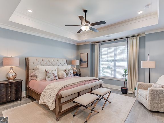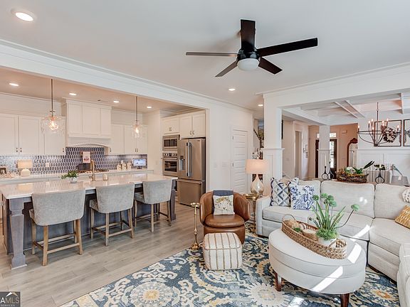 Beautifully crafted two-story home in a desirable gated community, as it perfectly blends modern luxury with timeless design. Rocking chair covered front porch with hand-crafted swing and charming architectural details. Proudly earned YARD OF THE MONTH with professionally designed outdoor spaces with premium upgrades for long-term appeal. Private rear-entry two-car garage offers dual EV charging stations. Step inside to find extensive trim work, upgraded light fixtures, and custom high-end finishes throughout. The open-concept family room and kitchen area are ideal for entertaining, featuring a remote-control gas fireplace with a motorized TV mount and a bright, airy layout. The gourmet kitchen boasts stainless steel appliances, including a double wall oven, a farmhouse sink, contrasting tile backsplash and a pedestal island highlighted by elegant pendant lighting. The custom butlers pantry is complete with built-in cabinets and matching quartz countertops, as well as pull-out shelving for optimal organization. The main-level primary suite shows off elevated tray ceilings, a luxurious frame-less shower, a freestanding soaking tub, and a spacious double vanity with quartz countertops. Upstairs, a versatile loft space provides room for a media area, playroom, or home office, along with two generously sized secondary bedrooms and two additional full bathrooms. Enjoy indoor-outdoor living with a covered back porch complete with oversized Bahama shutters for privacy, shade, and a cozy feel. A custom railing and gate create a safe space for pets, and the backyard is enclosed by a sleek aluminum fence. Additional upgrades include a thoughtfully designed breezeway, pull-out shelving in the kitchen and primary bathroom, freshly painted interior, and custom storage solutions throughout the home. There's even a walk-in attic to easily store seasonal decor and keepsakes. Located just a golf cart ride away from Downtown Monroe, you'll enjoy access to local shops, dining, and year-round entertainment. The home is also near reputable schools, major highways for an easy commute, golf courses, parks, healthcare, and recreational facilities. This home is filled with high-end finishes, custom details, and modern conveniences, making it a true standout in today's market!