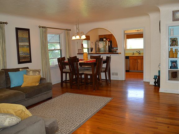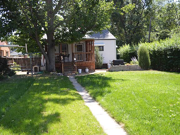 This adorable 1940's rancher is situated on a very private lot & has alley access. Four bedrooms, two baths, & one car detached garage with two car carport. Main level has two bedrooms, full bathroom, wood floors, coved ceilings in living room. Original built-ins in living room with the original phone shelf. The retro kitchen has original cabinets/hardware, wood floors, stainless steel refrigerator & dishwasher, range & is open to the dining/living area. The backyard is fully fenced in, mature landscaping, greenery that give a ton of privacy & some mountain views. Lower level has two additional bedrooms & a room that can be used for a family room or storage area. Laundry room is a good size with plenty of built-ins for storage with a sink. This well maintained home has a covered back deck, stucco exterior, 2014 roof, 2008 furnace with chimney liner added, A/C, & original wood floors. Close to downtown, hospitals, walking trails, parks, schools, restaurants, neighborhood coffee shops, & shopping.