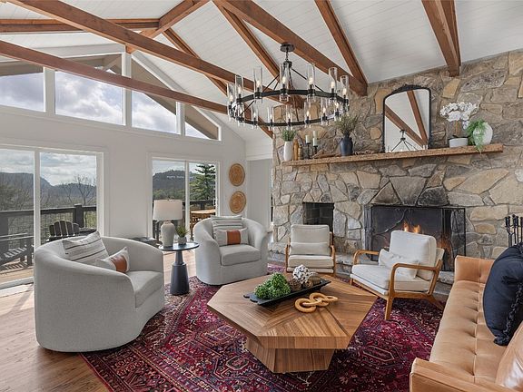 Welcome to your Highlands hideaway—a stunning 4-bedroom, 4.5-bathroom mountain residence just minutes from the heart of charming downtown Highlands! Perched at a high elevation, you’ll enjoy cool summer breezes and panoramic sweeping mountain views that will make every day feel like a vacation. Blending modern sophistication with timeless mountain character, this renovated and designer-furnished home is assured to become your sanctuary. Step inside to discover two expansive great rooms, each featuring its own massive stone fireplace, ideal for cozy evenings or lively gatherings. The modern kitchen and updated baths blend style and comfort, offering elegant finishes and thoughtful functionality. A spacious bunk room wing provides versatile accommodations for guests or family, while generous outdoor living spaces—including multiple decks and a scenic viewing porch—invite you to savor sunrise coffee or sunset cocktails with views that soothe the soul. Thoughtfully and beautifully furnished and move-in ready, this home is the perfect summer escape—or year-round haven. Don't miss the opportunity to own this beautifully appointed mountain gem in one of Highlands' most coveted locations! Home may be rented for a minimum of 30 days...generate revenue when not enjoying it yourself!