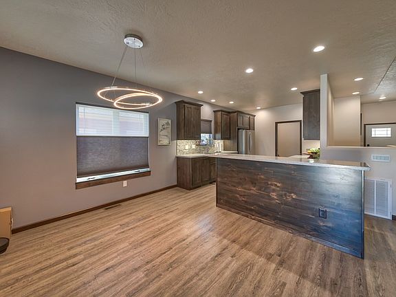 Welcome to your modern retreat in Cody, Wyoming! This exceptional 3-bedroom, 2-bathroom residence, built in 2019, is nestled within a serene residential neighborhood, offering a perfect blend of contemporary comfort and potential. Upon entry, an open-concept layout seamlessly connects the spacious living, dining, and kitchen areas. Natural light floods the space, creating an inviting and warm ambiance. The kitchen showcases sleek stainless steel appliances, ample counter space, and a convenient breakfast bar – perfect for both daily living and entertaining. The primary suite provides a peaceful escape, complete with an ensuite bathroom and a walk-in closet. Two additional bedrooms offer versatility for a home office or guest accommodations. The second bathroom is tastefully designed and easily accessible from both the common areas and the bedrooms. Beyond the main living area, a spacious unfinished basement holds incredible potential. Customize this space to your liking – create a workshop, a hobby room, or a cozy den. The possibilities are endless, allowing you to tailor the basement to your unique needs and preferences. This residence also features a two-car garage, modern fixtures and finishes, energy-efficient appliances, and central heating and cooling for year-round comfort. Nestled in a tranquil neighborhood, you'll relish the peace of small town living while remaining conveniently close to downtown Cody's vibrant shops, restaurants, and cultural attractions.