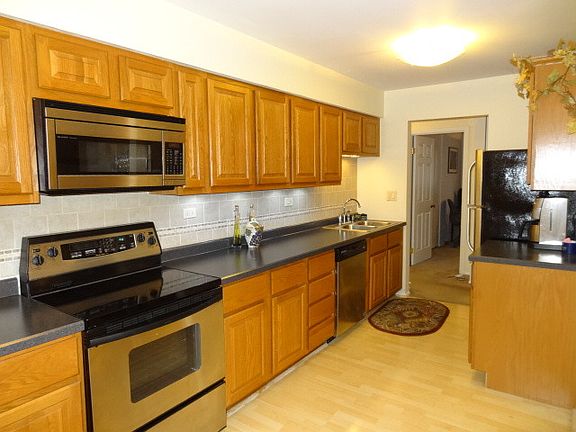 Welcome home...and wait to you see this updated and spacious 3 bed home all with large closets. Updated Oak kitchen with spacious cabinet pantry with Stainless steel appliances- undermount lighting, crown molding, neutral ceramic backsplash, Pergo floors in kitchen and eating area-Bright and updated ceramic baths. Super sized living room- and dining room- private balcony - Be ready to be wowed with the HUGE (only in 2nd flr units) mstr walk-in closet, large linen closet. TWO- 1st flr storage lockers (MAJOR PLUS and rare find in this complex) plus a basement storage locker- Bright and neutral paint thru-out, and updated 6-panel doors make this MOVE IN ready! TV in LR stays