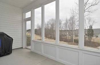 Elegant ranch home on premium lot designed for low maintenance living in 55+ community. Bright open floor plan complimented by hardwood floors and moldings. 3-Panel sliding glass doors provide an abundance of natural light. Kitchen boasts solid surface counters, SS GE Profile appliances, smooth top stove, built-in microwave and bill desk. Screened porch and patio overlooking woods.