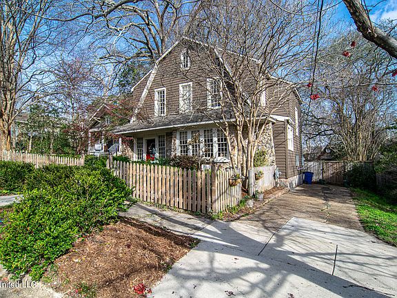 Do not miss 814 Fairview Street, a Belhaven architectural treasure on the market for the first time in 25 years. The home was cited by the City of Jackson's Historical Commission as the city's exemplar of a Dutch Colonial Revival home, featuring the trademark gambrel roof, a charming Dutch door and more. 814 Fairview is situated within walking distance to UMMC, Belhaven Town Center, Baptist Hospital, Millsaps College, Belhaven University and four primary schools. In addition, the Greater Belhaven neighborhood features miles of newly installed wide sidewalks, quick access to the Museum Trail and Belhaven Mountain Biking Trails along with multiple neighborhood parks and green spaces. This historic home greets you with a charming red Dutch door into the formal foyer and living space, featuring built in window seats that double as storage space, and a beautiful stone fireplace. Move into the dining room and open kitchen, making moving from cooking to dining a breeze. Take one step down into the cozy brick floor den and attached sunroom, which leads to an enchanting fenced backyard featuring outdoor storage space, a deck, swing and storage room that could also easily serve as the perfect children's playhouse! Back inside, a dual entrance staircase takes you to the second floor which features three bedrooms, one bathroom and the laundry space. Throughout the second floor, attractive plantation shutters allow you to adjust light in each of the rooms. The third floor is a magical place with its own walk-in closet and en suite bathroom. Though its charming vaulted ceilings disqualify this 365 square foot space from being considered part of the H/C square footage, this amazing suite provides a great fourth bedroom space. Both yards designed and maintained by current owners who are a former professional Landscape Architect and expert gardener. Current owners have conducted a laundry list of restorations and repairs throughout their time in the home, all done in a manner to preserve its historic integrity. Those who appreciate the craftsmanship and detail of this architectural style and era will be thrilled by the charm of this storybook home.