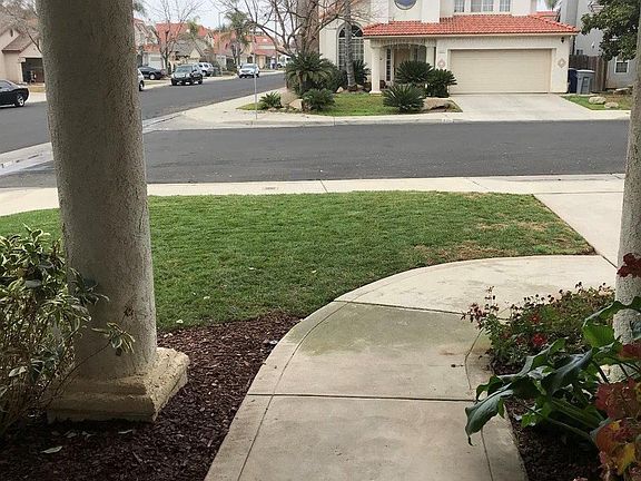 WOW! Come view this beautiful 2 story move-in ready home located in Clovis Unified. Largest model in development includes: Vaulted entry, tiled flooring throughout downstairs. Living room w/fireplace, Formal DR, kitchen & den are enhanced w/heavenly natural light. Spacious laundry room. w/sink & 1/2 bath finishes the downstairs. Newer carpet extends up the stairway into all 3BR, 2 w/new paint. Double doors open into SPACIOUS Master bedroom and Bath has huge tub with separate shower, and skylight and large walk-in closet. Ceiling fans in all rooms except FDR. Enjoy 2 covered patios for entertaining. Outside includes newer double planked fencing on south side, new rain gutters, and new paint on trim and eaves. Beautiful corner lot has great landscaping front & back, with a variety of fruit trees. This truly will not last!