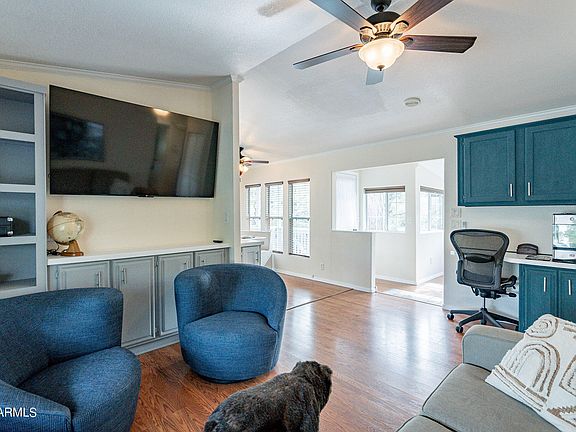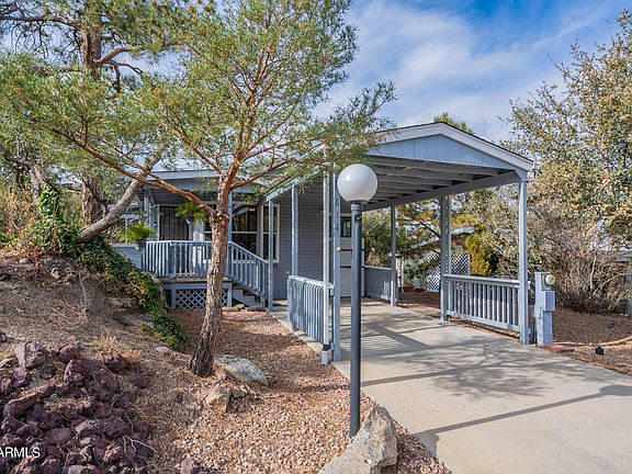 Remarkable lot with privacy right in the middle of town. Peaceful, quiet property backing to the creek. Every surface has been touched. Updated kitchen. Completely remodeled bathroom. Lovely wood plank flooring. Furnished & completely move-in ready. House has extra living space added in its beautiful sunroom. Perfect as an art studio or just a great place to enjoy the morning light and drink coffee. Gorgeous outdoor spaces with a wrap around deck and tons of extra storage built in at the rear of the home. Your retreat away from the heat with quick access to downtown Prescott and all the amenities of Prescott Valley. Come see this gem of a property.