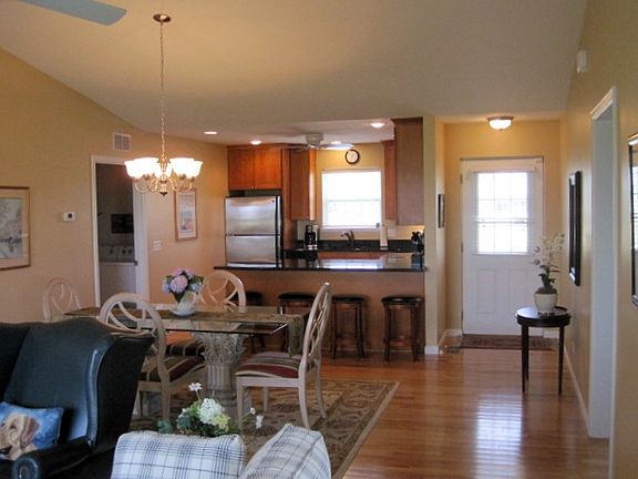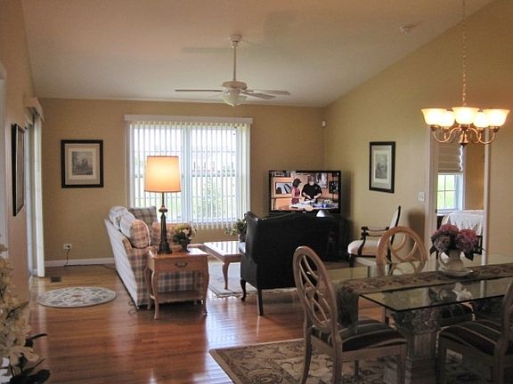 Available 9-1-2018. 2 bedroom, 2 bathroom single family home with a 2 car garage, full insulated basement, with plumbing installed in the floor for a future bathroom. Custom designed kitchen with 42 inch high wall cabinets with crown molding. Stainless steel, refrigerator, with ice maker, dishwasher, glass top electric range, over the range microwave with outside exhaust fan. Granite kitchen countertops. Hardwood floors in the kitchen and great room. First floor laundry room with washer, dryer and laundry tub. A great screened porch located off the great room. The master bedroom has a walk in closet, master bath has a full 5 foot shower with glass doors, both bedrooms are carpeted. The home as a high efficiency HVAC system, a high efficiency water heater and an automatic water softener. This is an age restricted community. One of the home owners must be at least 55 years old.-view attached photo's.
