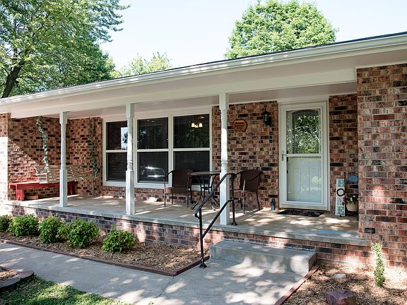 Beautiful All Brick updated home in quiet neighborhood! Sit on the rocking chair front porch and soak it in. Kitchen has been redone with new counter tops and refinished cabinets, additional breakfast bar area added as well as an expanded Mud/Laundry room. NEW PAINT throughout the house. All stainless steel appliances which include a professional chef gas stove, refrigerator, and wine chiller stay with home. New wood floors, marble and ceramic tile, newer roof, and newer double pane windows. 15x9 Outbuilding has power, and can be used as a storage shed or kids playhouse- window unit stays with outbuilding! Large 2 car garage with built in shelving, and work benches. This one won't last long come and see it while you can!