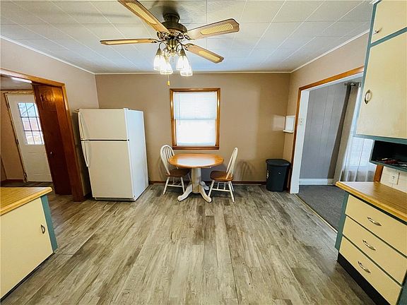 This cozy bungalow style charmer will have you ooh-ing and ahh-ing all the way through it. Newer updates include carpeting in the living room and vinyl plank flooring in the kitchen and bathroom. The kitchen is roomy enough to comfortably dine in under the light of the morning sun. Move-in ready, but TONS of upside potential left! Check out the clean, DRY basement to see the second bathroom and plenty of storage. There's even a huge walk-in closet off the main floor bathroom. You can use it as is for laundry and storage, or renovate into a small craft room or office. The possibilities are endless!