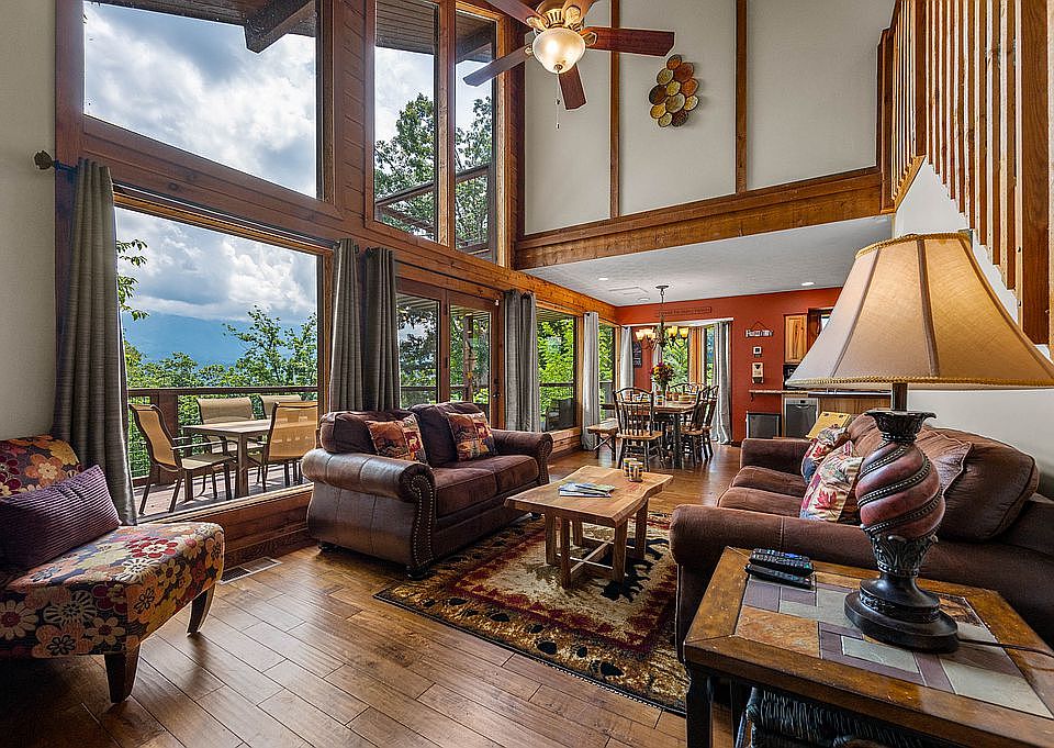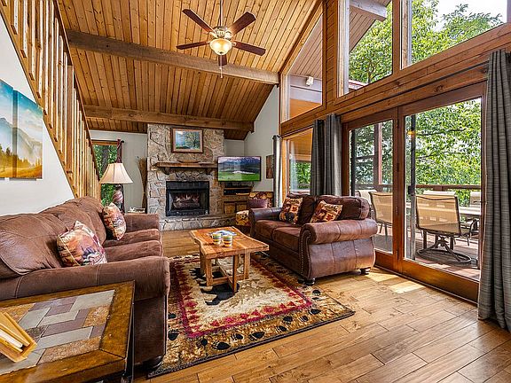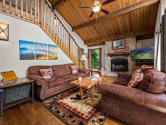 Private, 2 BD/2.5 BA, 2,300+ sq ft, beautiful log cabin located only minutes to the Great Smoky Mountains National Park! Has three levels, w/deck access on all three levels, and comes with majestic views of the Smokies from all of these levels!!! Great Room w/masonry gas fireplace, along w/a Large Loft area, complete w/a Whirlpool in the Bedroom area and your own private Bathroom! Includes a full kitchen w/tile countertops. Has a Master Bedroom and Bathroom on the main level, and a Large Recreation Room on the lower level, complete with deck access and pool table for entertaining guests. Also has a surfaced drive, allowing for sufficient parking close to the home, as well as being at the end of the drive, allowing for maximum privacy! Only mins. to the Great Smoky Mountains National Park, as well as being mins. to Gatlinburg, Pigeon Forge, and the attractions! Very private and a very picturesque location!