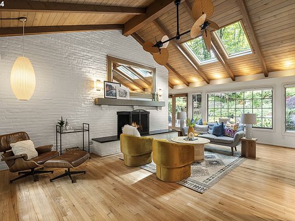 - Features: Beamed Ceilings, Ceiling Fan, Fireplace, Hardwood Floors, Skylight, Vaulted Ceiling