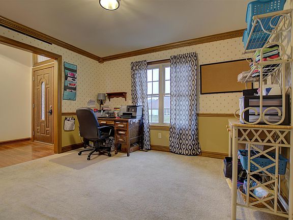 Great opportunity in terrific neighborhood! Corner lot home close to park, school, hospital! Outside updates include new light fixtures & landscaping. An above ground pool will make this a favorite place to have fun & relax! Beautiful, spacious home! Large foyer with hardwood floors, cathedral ceiling, and lots of natural light opens to family room with gas log fireplace, natural wood mantle with tile hearth and large windows. Formal dining room/office is easily accessible from the front door and has a new light fixture, extra wide trim, crown molding, and new thermostat. The kitchen features a new dishwasher, range hood, stainless steel appliances, gas convection oven, work area, timer light switch in pantry, very nice eat-in kitchen area, & ceramic tile floors. Large laundry room with storage! Many new light fixtures and mirrors in bathrooms as well as all new smoke detectors. Master bedroom has vaulted ceilings, crown molding, window seats and ensuite with jetted tub, tiled shower, double vanity and walk-in closet with organizers. Two more bedrooms include lots of light, vaulted ceiling, and huge walk-in closets. Walk-in attic adds lots of storage space. Loft/office area has wall mounted shelves and overlooks family room. Need a get-away space? Daylight basement with kitchenette also has family area with cabinets, plenty of storage, perfect for entertaining. Speakers stay. Gas water heater (2015) roof (2007), garage door (2010), furnace serviced 2018. Also includes sump pump with battery back-up.