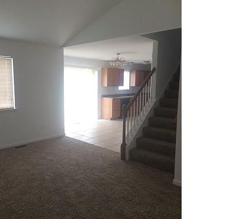 New carpet throughout, open floor plan with a vaulted ceiling in living room. Ceramic floor in the kitchen and dining area, ½ bath on the main floor as well as utility room/laundry room coming out of the garage. There are also sliding doors from the kitchen to the backyard with a very spacious patio. Two full bathes upstairs as well as three bedrooms. Great home close to town and easy highway access. Welcome to this wonderful two story home with 3 bedrooms and 2 ½ bath home.