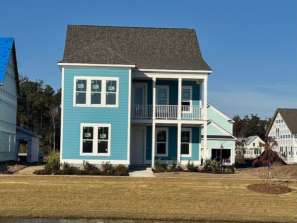 This quick move in home is under construction with an estimated December/January completion. 4BR /3.5BA + study and large loft. Timeless coastal style meets modern convenience in this spacious Poplar new home. Enjoy beautiful pond views from the first and second floor front porches. Inside, you’ll find a generous Owner's Suite with a large great room and upgraded gourmet kitchen. The first floor flex room provides a great space to be used as a dining room, sitting room, or library. Upstairs features 3 guest bedrooms with 2 guest baths, a large loft and additional office space. The back of the home offers a screened porch plus a large patio, perfect for year-round outdoor living! Tons of upgrades added! Live near great schools, popular Market Common, & the beach. Walk to major retailers at SayeBrook Town Square. Completed amenities will inspire you to swim laps, play pickleball, & gather with friends. We include an exceptional 10yr Home Warranty with 5-year water infiltration and leak protection...ask for details! Photos are of a model home for representational purposes only, and may show different options and upgrades selected.