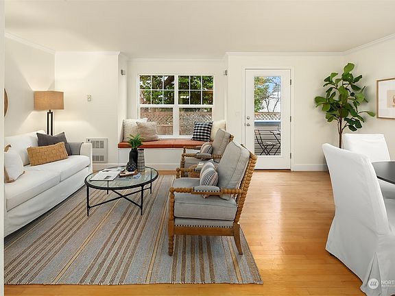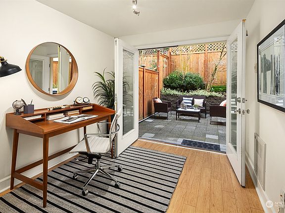 Well-appointed 3 bedroom/ 2 bath townhome perfectly situated near vibrant Fremont, Green Lake and Wallingford neighborhoods. Excellent floor plan with ample size rooms and generous storage throughout. Maple cabinetry and floors enhance the main living areas, complementing the deck off dining room, which is perfect for enjoying outdoor meals. Kitchen, with gas cooktop and breakfast bar, for casual dining.  Both upper bedrooms enjoy vaulted ceilings and a walk-in closet (considered primary) additionally, a rare, dedicated laundry room with built in storage. Additional highlights include private patio with hot tub and 1 car attached garage. Easy access to amenities, parks, commute or transit. Must see!