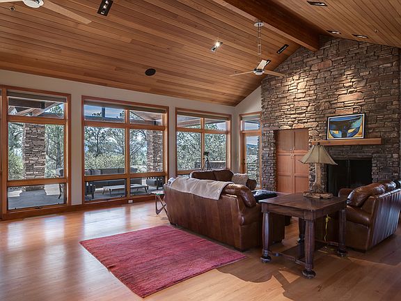 - Exterior Features: Tall Pines on Lot, Landscaped, In the Trees, Covered Patio, View of Mountains, Satellite Dish, Patio, Dog Run, Panoramic Views, Spa/Hot Tub, Drip System, Fire Pit, Corners Marked
