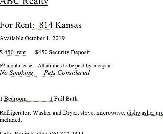 This is a 1 bedroom, 1.0 bathroom, multi family home. This home is located at 814 N Kansas St, Weatherford, OK 73096.