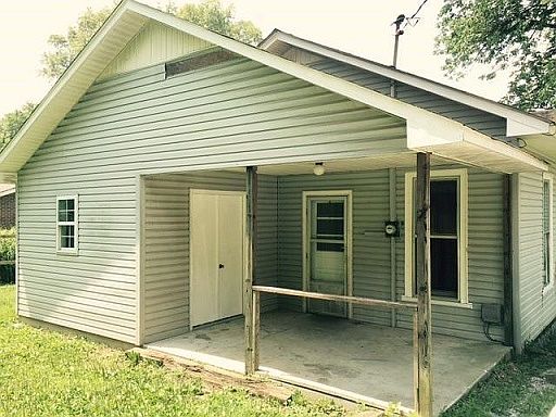 This lovely vinyl sided 3/4 BR, 1 BA home has had some updates, HVAC was added in last few years, covered patio, two storage buildings, Kitchen, updated cabinets, Dining Room (or Bedroom 4), Utility Room with washer and dryer hook-ups, Living Room and covered front and rear porches. Lovely corner lot close to town! Owner financing may be possible with a decent down payment.
