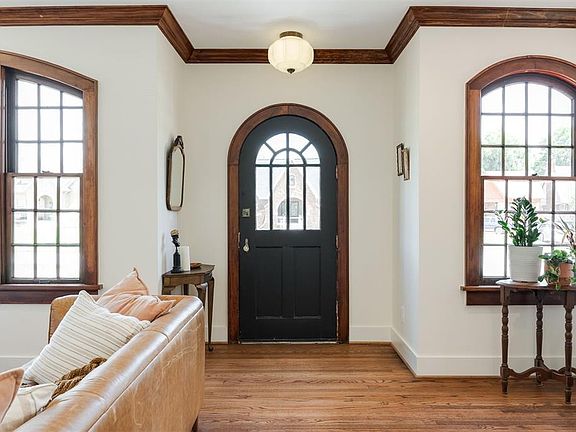 Welcome home to the Emerald Tudor! This stunning property has undergone an extraordinary restoration, perfectly incorporating modern conveniences with gorgeous historic elements. The formal living room with arched windows, rich stained woodwork, and Frankoma fireplace with built in bookshelves, provides a comfortable and elegant entertaining space and sets a tone of warmth and welcoming. French doors lead to the open concept formal dining room and kitchen, with a smartly designed built in dry bar, custom walnut cabinetry, sleek matte black appliances, and an awe inspiring quartzite backsplash. Through an arched doorway, the very berry laundry room doubles as a pantry space! The moody dedicated office has its own exterior entrance, perfect for work from home professionals. A large bedroom with ample closet space and a designer bathroom with Zellige tile, Concretti sink, and checkerboard marble flooring round out the beautiful downstairs! A bright and airy second living room awaits at the top of the stairs, with built in desk, reading nook, and vaulted ceilings. The unique layout includes two upstairs bedrooms with large closets, both with en-suite bathrooms! This is truly a one of a kind home not to be missed!
