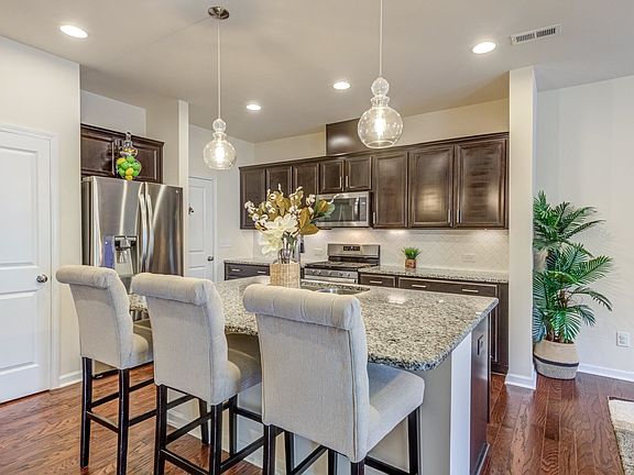 Wonderful townhome in a great location in Salem Pointe in Apex. Impeccably maintained, this house features 3 bedrooms, 2.5 bathrooms and a one car garage. Upgrades include updated light fixtures through the house for the dining room chandelier, pendant lights, flush mounts and ceiling fans. APPLIANCES CONVEY. Also upgraded kitchen cabinets and backsplash, and upgraded tile in bathrooms. Granite countertops and stainless steel appliances in the kitchen. The secondary bathroom on the second floor was upgraded to a double vanity. The primary bedroom makes for a wonderful retreat with a large walk in closet. The private backyard has a concrete patio and a privacy fence in the back. Amazing location close to downtown Apex, Costco, and Beaver Creek Commons. Also close to downtown Cary ad Bond Park. Easy access to US 64 and NC540. Rentals allowed!