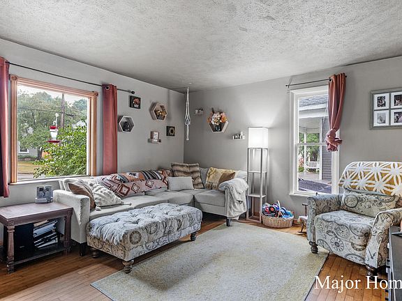 Welcome home to peaceful Belding! As you enter this home, there is a large mudroom, leading you into the dining space of the home. You are greeted with tall ceiling throughout the home with lots of outdoor light streaming in. On the main floor, you will find a kitchen with newer appliances, a bathroom, along with a large living room and bedroom with a connecting den/office and walk-in closet! The second floor boasts 2 large bedrooms and additional storage space in the attic. You will appreciate the recent renovations for peace of mind living: a/c and furnace (2021), and water heater (2020). The backyard is large and private, with great storage in the garage. Back on the market due to buyer financing falling through, call this home yours today!
