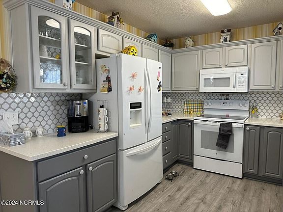 Charming one-level home in prime location. Featuring a split floor plan, this home has 3 bedrooms, 2 full baths, and 203.04ft enclosed sunroom (not included in heated square footage). Living room has lots of natural sunlight, vaulted ceiling, and ceiling fan. Beautiful solid surface countertops in the kitchen, with white appliances and updated cabinets. New LVP flooring, flows from kitchen into sunroom. Passthrough window from sunroom to kitchen is great for entertaining. Spacious primary bedroom and updated bath ensuite create a lovely retreat. Oversized tile walk in shower feels like a spa. Solid surface counter top with custom cabinet, and tile floor. Solar tube lighting brings in natural light. Secondary bedrooms have LVP flooring. Second full bath is updated and also features solar tube lighting. New roof 2017, water heater 2 years old, new HVAC 2017.