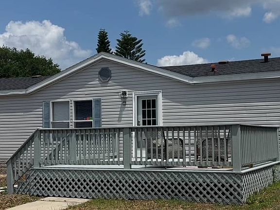 Welcome to this beautifully updated 4-bedroom, 2-bathroom home featuring a primary en-suite with a walk-in shower, a garden tub, dual sink vanity, and walk-in closet! This amazing oasis boasts a LARGE open floor plan and a separate dining area perfect for entertaining. The large family room flows seamlessly into the kitchen, which boasts stylish Butcher Block countertops and stainless appliances. Stock up on the groceries because this kitchen is equipped with a HUGE PANTRY and plenty of shelving! A dedicated indoor laundry room with storage shelves offers convenience for all your apparel needs. Enjoy peace of mind with recent upgrades, including a NEW ROOF and a NEW HVAC system. Step outside with your favorite beverage to relax on the front porch and enjoy Florida's beautiful climate. Take advantage of the ample parking, carport, and storage shed. Located in a well-maintained, ALL-AGE community with fantastic amenities such as a community pool, dog park, and playground. Lot lease: $970/month **Pet-friendly** Plenty of space for parking and storage! Don't miss this opportunity to live in comfort and style in a vibrant, amenity-rich neighborhood! All listing information is deemed reliable but not guaranteed and should be independently verified through personal inspection by appropriate professionals. Our company does not and cannot guarantee or warrant the accuracy of this information or the condition of this property. Measurements are approximate. The buyer assumes full responsibility for obtaining all current rates of lot rent, fees, and pass-on costs. Additionally, the buyer is responsible for obtaining all rules, regulations, pet policies, etc., associated with the community, park, or home from the community/park manager. Our company is not responsible for quoting said fees or policies. Financing is available through 3rd party lenders. The sales price does not include tax, dealer fees, or administrative fees. Please contact the sales agent for additional information.