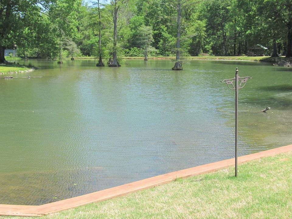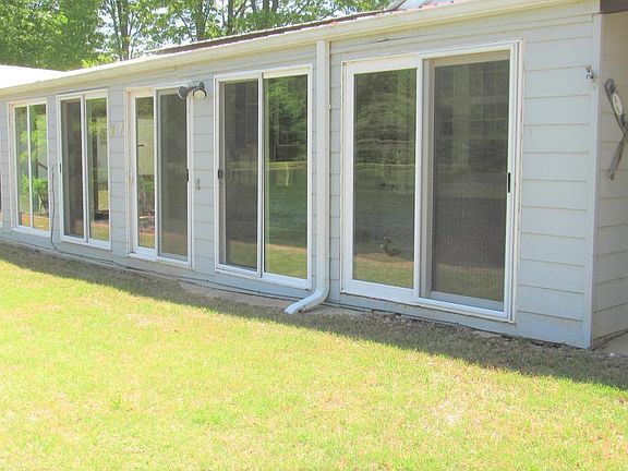 The front of house faces the lake and the back faces the road. This is one of the largest lots in the neighborhood. Wheels have been removed and home is brick unpinned with concrete piers with weep holes and an access door to under house. It should qualify for FHA. New carpet, new stainless appliances, new gutters and seller spent $21,000 on a new seawall all across back of yard. Treatment Plant was pumped last year. There is a 14x38 enclosed heated and cooled sun room overlooking lake to sit and enjoy the sunrises and sunsets. Home has been very well maintained and is move in ready. There a 2 metal detached garages w/concrete floors that are heated and cooled. One was used for an office. There is also 3 more storage bldgs. One houses an apartment. This is a very nice place