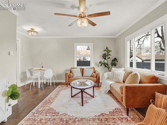 Completely renovated bungalow minutes from downtown on awesome lot with mature trees, open floorplan with main-level living, and huge rear courtyard with mountain view - nothing for you to do but move right in! Features/amenities and updates include: *2 Spacious main-level bedrooms *Fully remodeled bathroom on main *Lower level den/family room *Lower level office/study/craft room/bed 3 *New roof on home and detached garage *New windows *Fully remodeled interior *New interior/exterior paint *New flooring throughout - LVP on main and carpet in lower level *Fully remodeled kitchen with brand new appliances, new granite countertops, new cabinets *New lighting throughout *New hardware/fixtures throughout *New fans in living room and both main-level bedrooms *New landscaping *Insulated detached garage with new exterior paint makes great workshop *Crown molding throughout main-level *Central air *Updated electrical *Updated plumbing *Alley access *Gated driveway with ample parking *Fruit trees in the courtyard *Basement storage room has exterior door to rear yard. And much more! Don't miss this awesome opportunity with convenient access to hiking, biking, shopping, dining, all downtown amenities and I-25 for an easy commute anywhere in town.