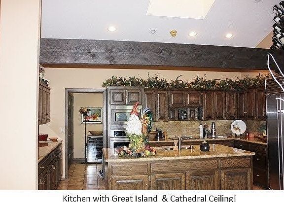 Custom Built By Previous Owners Enhanced & Nurtured by Current Owners! View of a Beautiful Pool & Tennis Court from every room. Open Living & Dining Area with Rock Wall Fireplace. Nice Wine/Beverage Bar having 2 built-in Wine Racks, Wine Cooler, & Granite Topped Seating Counter for 4. Chef's kitchen with vaulted ceiling, Massive Granite-topped island, Jenn-Air Range, Warming Oven, Sub-Zero Refrigerator, Granite Counter tops, & Tile Flooring.. There is also an abundance of Cabinets and adjoining Breakfast Area with built-in Desk. Very spacious Utility Room large enough to house a 2nd Sub Zero Refrigerator, Wine Cooler, Pantry, Desk Area plus a Dumb Waiter to the Garage below. Master Bedroom Suite is warm & inviting with Sitting Area & Fireplace plus a wall of windows viewing the Pool & Tennis Court. Master Bath amenities include Skylight, Tile flooring, double Sinks, Vanity Area, and relaxing Jacuzzi Tub & Separate Shower. There are 2 Guest Bedrooms; each with Private Baths & both enjoying gorgeous Outdoor Views. Garage for 3 Cars is located on back of house only a few steps down from 1st level and having great storage closets. All f this sits on a Lot backing up to a Pond on the Golf Course & View of Holes# 3. Spectacular! Could You Ask For Anything More!!