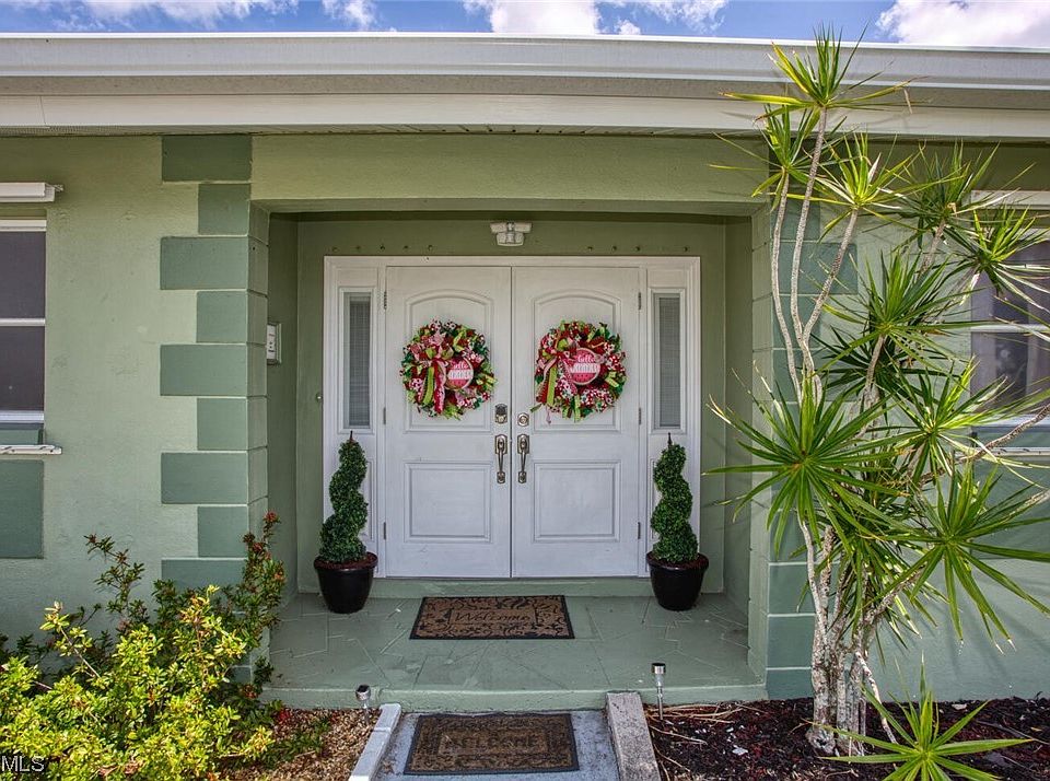 Now available in one of the most desirable areas of Cape Coral, this updated 2bd, 2bth home is move in ready. No worries about utility assessments here, as they have been paid in full. Enjoy your morning coffee on the large screened in lanai overlooking a big, completely fenced in backyard with lovely landscaping and a Pergola that has lights, swing, and sunshade. So many upgrades throughout including a new Roof, Some Leaf Guards, and AC System, along with New Doors, Baseboards, Pantry, Mudroom, Ceiling Vents, and Plumbing fixtures, all in 2021. New kitchen (2016) New Appliances (2021). Water Heater (2022). Master Bath Shower (2018). Repainted Tub (2021). Great seasonal or full-time residence. Seller is willing to leave some furnishings and tools. Close to restaurants and shopping, do not miss your opportunity to live in paradise.