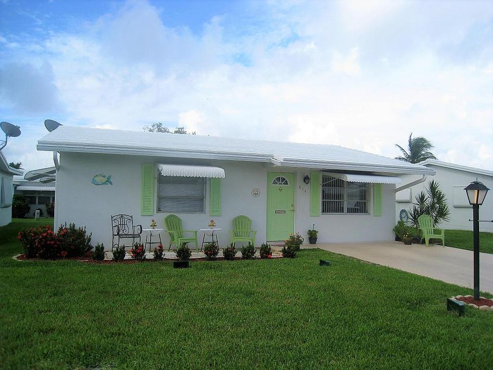 Great price for a move-in condition home! Tastefully updated with a NEW kitchen, granite counters, stainless appliances. Large 4 season Florida room, currently used as dining room. Updated bath. New washer/dryer, new hot water heater, all new light fixtures and fans. Rec lease paid in full. 18 hole par 3 golf, 3 clubhouses, 3 pools, lawn care, and more included in low monthly fee.